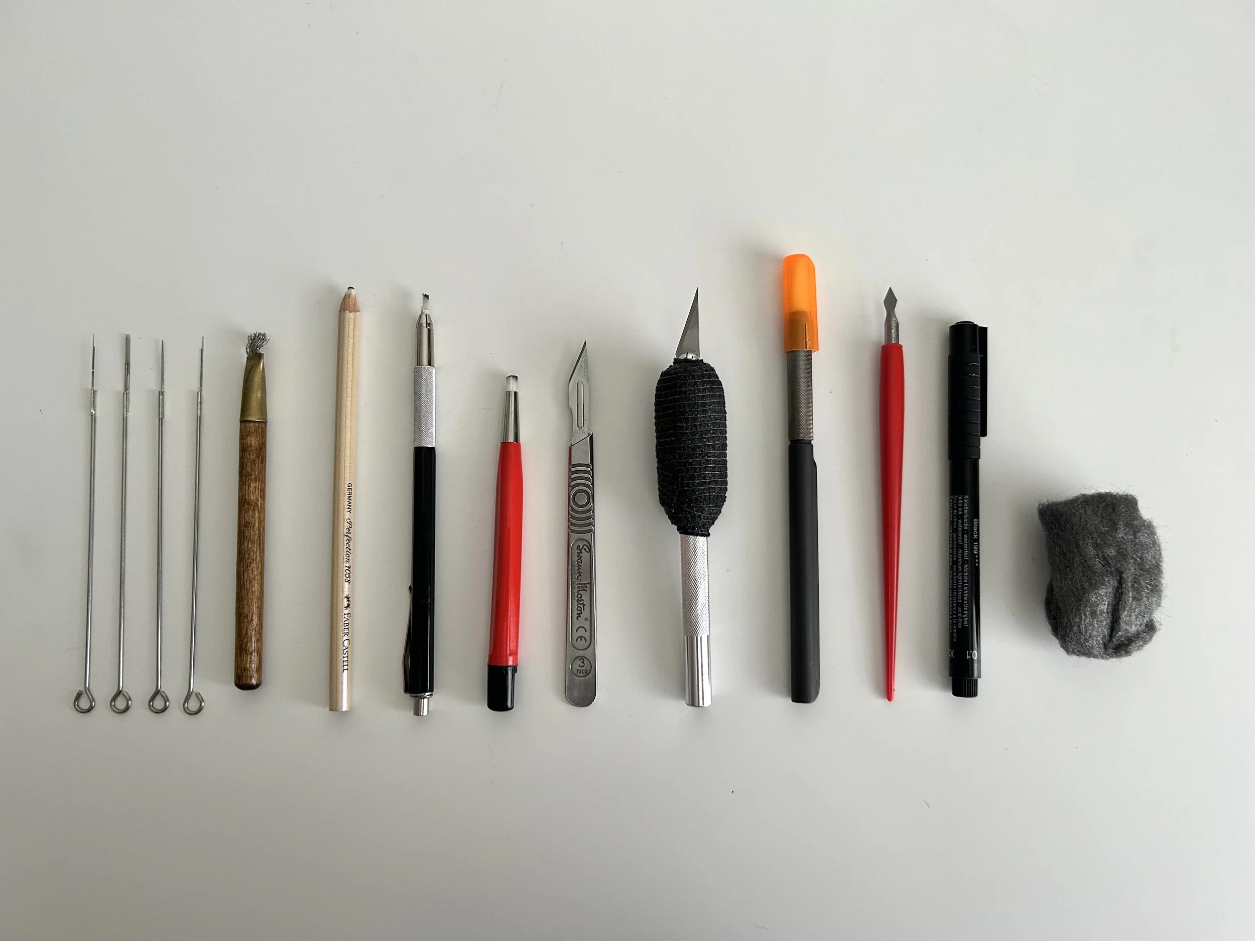 Sewing Needles & Scalpels – Perfect for highly controlled marks or experimental effects.